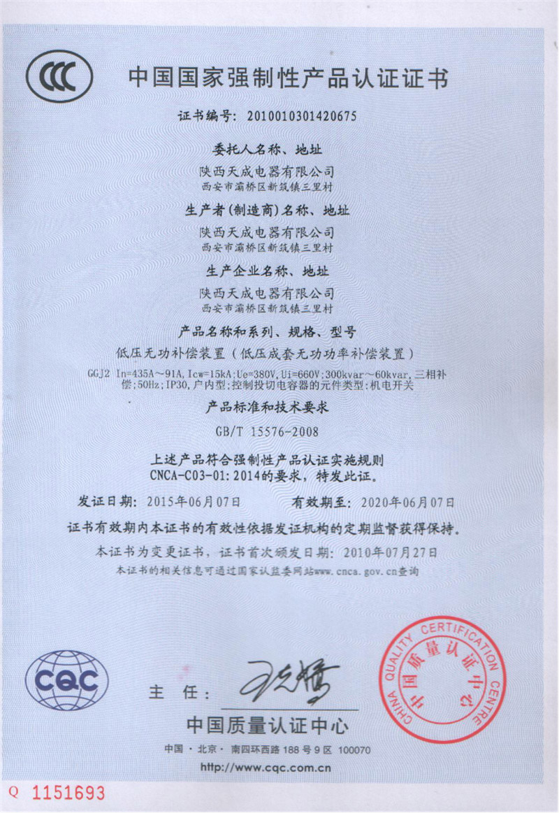 • 检验报告-低压无功补偿装置
